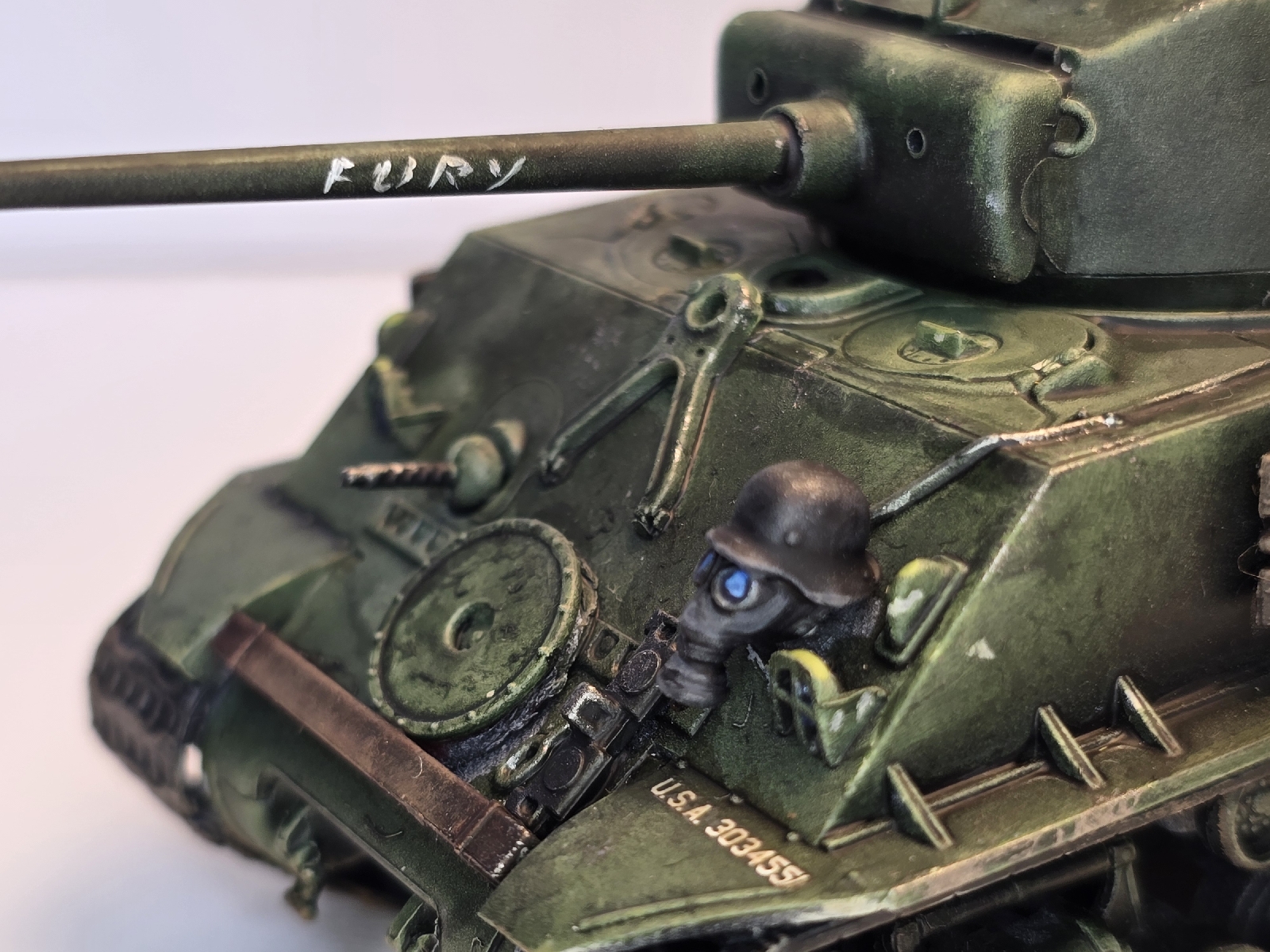 Używałem kalkomanii z zestawu italeri, niestety część się zniszczyła, więc napis na lufie pędzlem. Jest nawet lepszy.